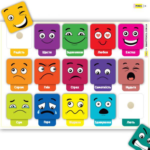 У наборі шаблон для самостійного виготовлення гри на липучках. Роздрукуйте матеріали гри на кольоровому принтері на щільному папері, заламініруйте з обох сторін. Виріжте знімні деталі, на фон приклейте липучки діаметром 10-15 мм. м’яку частину (петлі), на зворотний бік знімних елементів липучки з гачками. Все гра готова, можна починати грати!