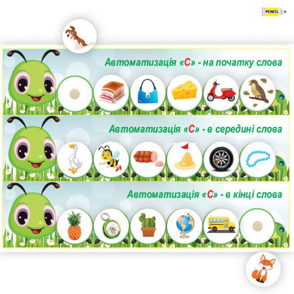 Три гусениці. Автоматизація звуку С на початку, середині та в кінці слова