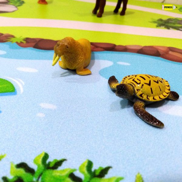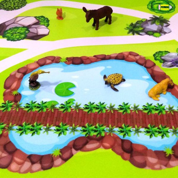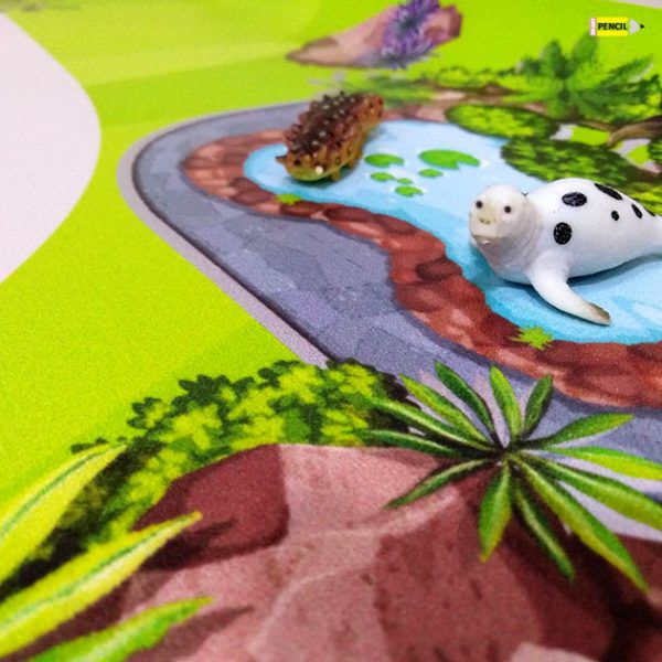 Іідеально підходить для гри з дерев’яною залізницею, динозаврами, зоопарку або ферми. Килимок є прекрасною основою для створення чудових ігрових світів. Килимок можна протирати вологою серветкою . Розмір 50 х 100 см(+/-1см). Матеріал вініл. 💥💥іграшки тварин не входять до килимка
