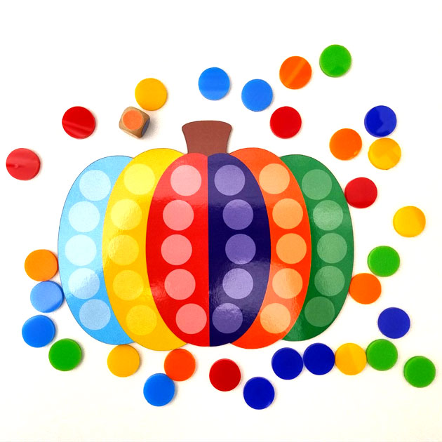 Комплектація Гарбузик, кубик , 30 фішок(6 кольорів по 5шт)+ кубик