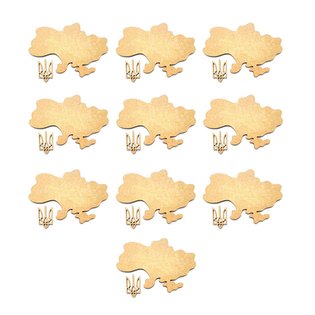 Заготовка для творчості Мапа+Тризуб 10шт. 12 х 8см. ХДФ 2,5мм кількість