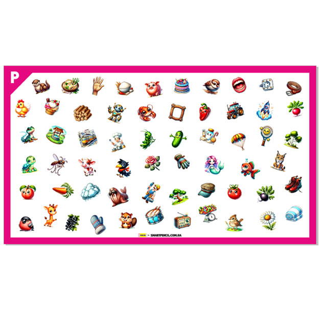В набір входять килимок 70х 40см, 3 рамки, картка з переліком слів