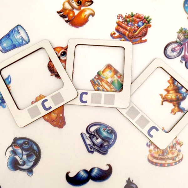 В набір входять килимок 50х 40см, 3 рамки, картка з переліком слів