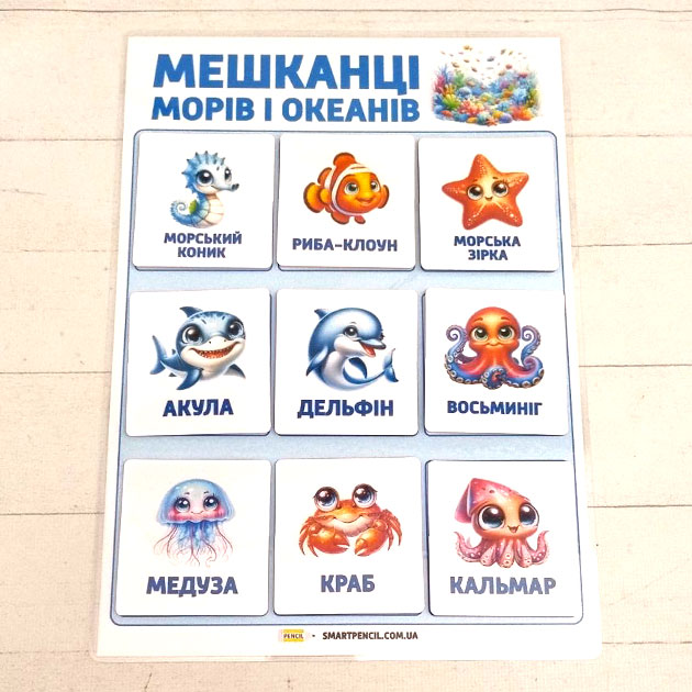 Лото Мешканці морів і океанів. Гра на липучках