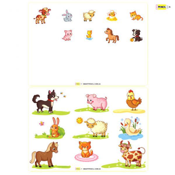 В наборі шаблони для самостійного виготовлення ігор на липучках в підготовлені до друку форматі А4. Роздрукуйте матеріали гри на кольоровому принтері на щільному папері(фотопапір). Заламініруйте все з обох сторін, прикріпіть липучки. Все гра готова, можна починати грати!