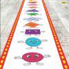 Діти можуть пересуватися на цьому килимку. Ви можете використовувати килимок на уроці (кругообігу).Ви також можете розмістити його в класі або в коридорі для дітей, які потребують додаткових вправах або вправах. Килимок надрукованій на міцному вінілі Розмір 2.5м х 0,5 м. Його легко згорнути (рулон висота 0,5 м).