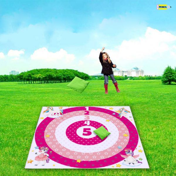 Розвиваємо координацію рук і очей. Проводимо весело час на природі в колі сім’ї та друзів. Матеріал щільний вініл. Легко згорнути в рулон. Розмір 1 х 1 м + 5 м’яких мішечків