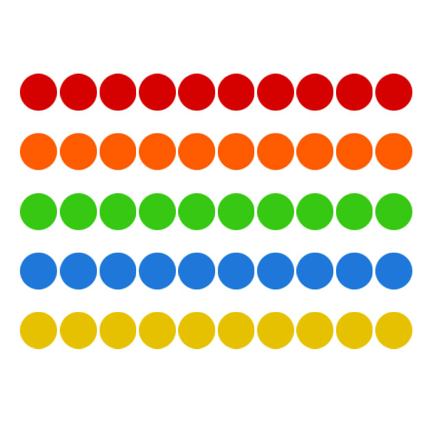 Мозаїка Кругла 20 х 20 мм асорті 50 шт(10 червоних, 10 зелених, 10 блакитних, 10 жовтих, 10 оранжевих)