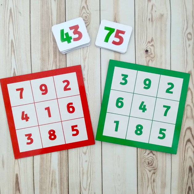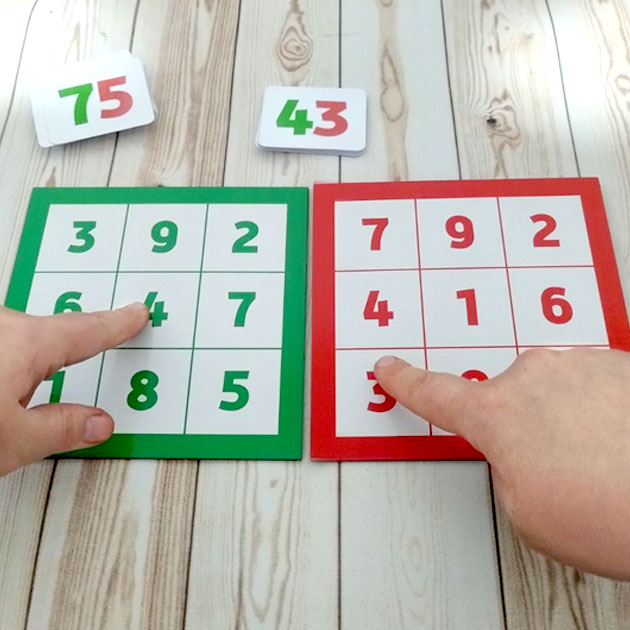 Педагог показує картку, задача дитини показати відповідні цифри на планшетах відповідного кольору та назвати правильно число.