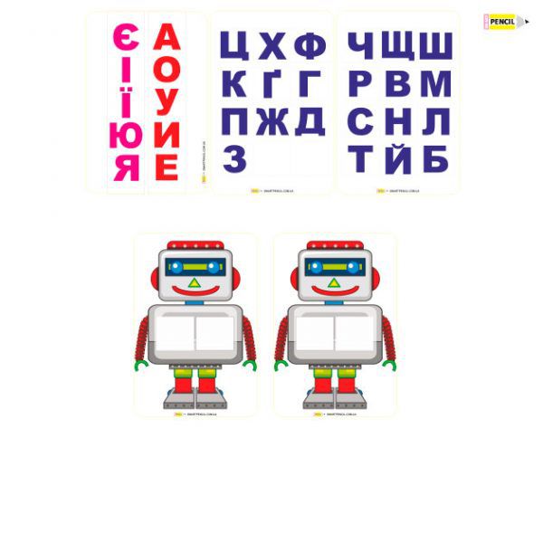 У наборі шаблон для самостійного виготовлення гри на липучках. Роздрукуйте матеріали гри на кольоровому принтері на щільному папері, заламініруйте з обох сторін. Виріжте знімні деталі, на фон приклейте липучки діаметром 10-15 мм. м’яку частину (петлі), на зворотний бік знімних елементів липучки з гачками. В роботі проріжте в віконцях отвори, щоб просовувати полоску з голосними. Все гра готова, можна починати грати!