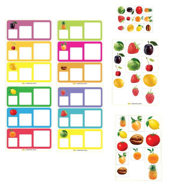 У наборі шаблон для самостійного виготовлення гри на липучках. Роздрукуйте матеріали гри на кольоровому принтері на щільному папері, заламініруйте з обох сторін. Виріжте знімні деталі, на фон приклейте липучки діаметром 10-15 мм. м’яку частину (петлі), на зворотний бік знімних елементів липучки з гачками. Все гра готова, можна починати грати!