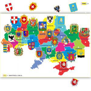 Мапа з гербами областей в електронному вигляді. Формат PDF